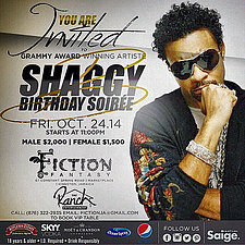 Der Grund, warum Shaggy in manchem Jahr nicht direkt an seinem Geburtstag mit seiner Famiie feiern kann, ist natürlich der Job. Zu seinem 42. Geburtstag etwa bezahlte ihm Bacardi eine riesen Geburtstagsfeier in Sydney- natürlich nicht ohne Eigennutzen. Bacardi bewarb damit die Vodkamarke "42 Below". Shaggy hatte einen Auftritt, es gab Meet&Greets und die Aktion wurde natürlich auch über die sozialen Netzwerke stark promoted. Einige Impressionen davon hier: